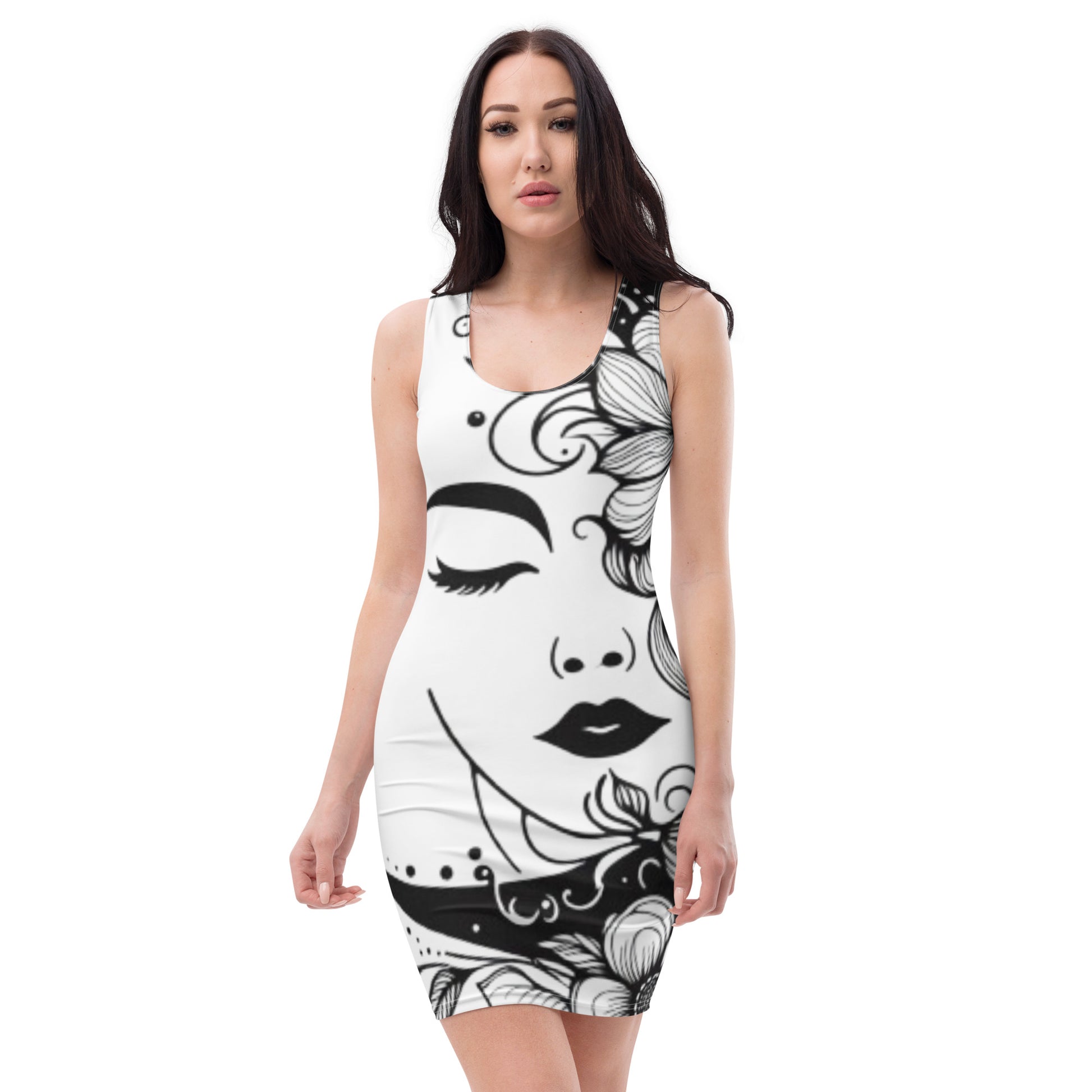 Gesichtmotiv, Make a statement and look fabulous in this all-over printed, fitted dress.