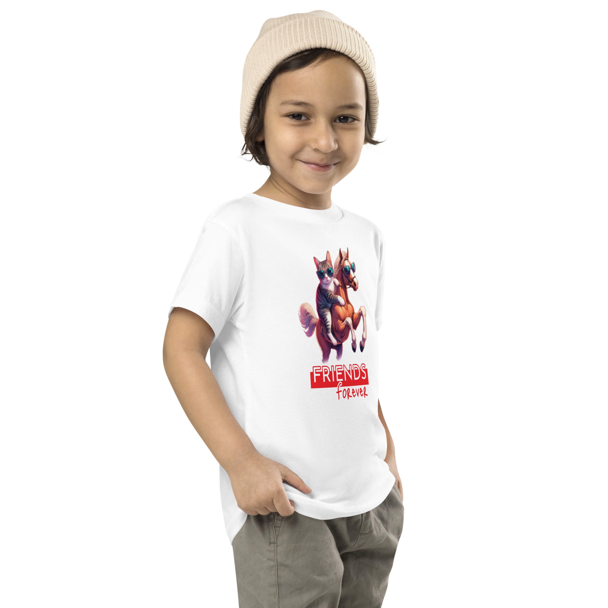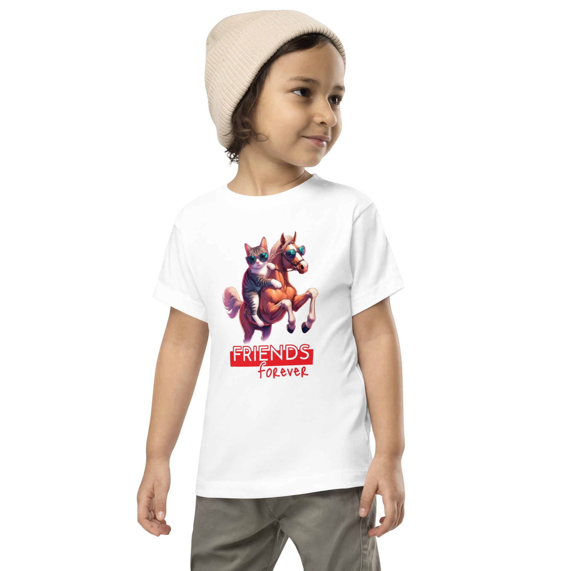 Frends forever, your toddler do their thing while feeling super comfy and looking extra stylish in this short-sleeve jersey t-shirt from 100% cotton with a unique print. The tee is soft, durable, and bound to become the staple of your toddler's wardrobe.