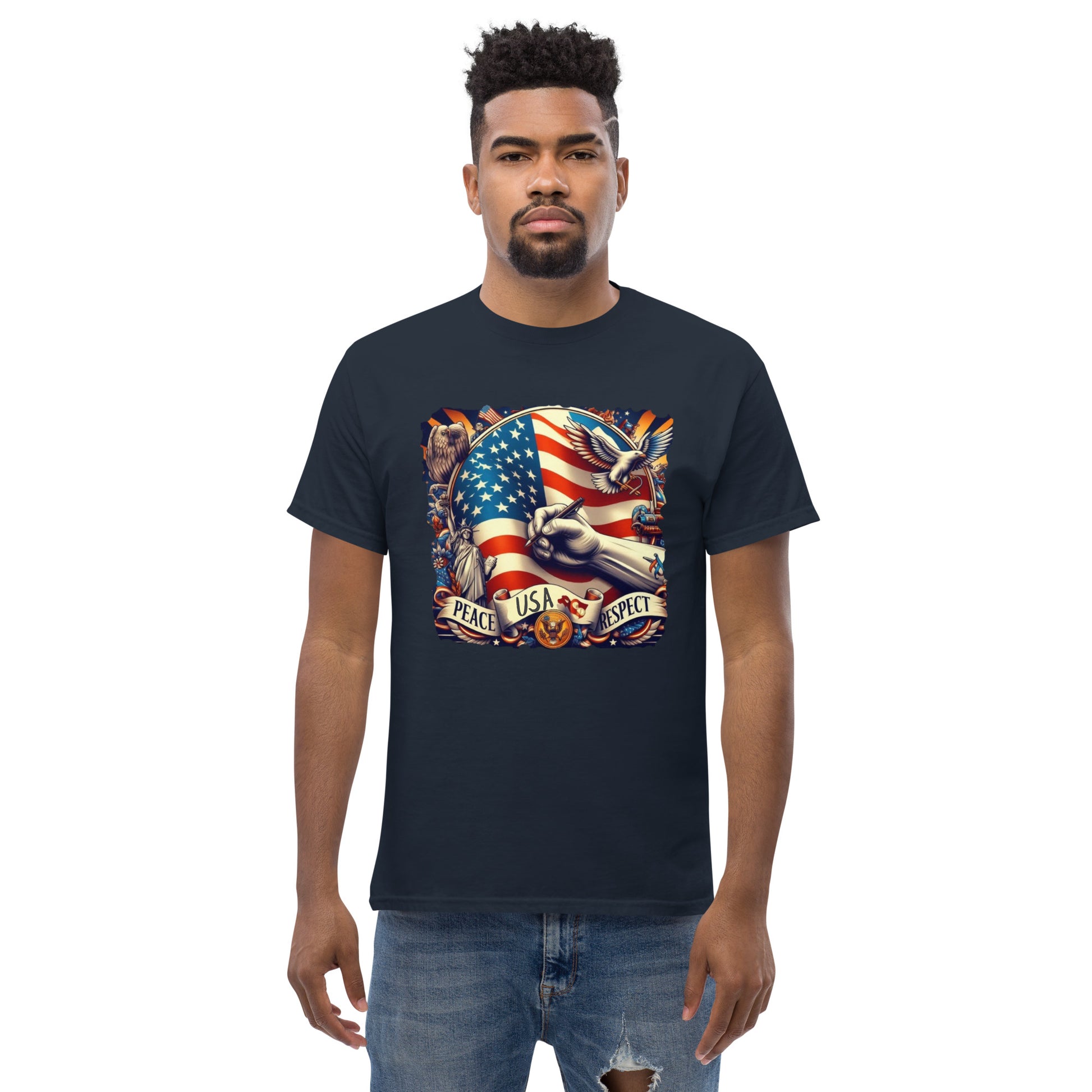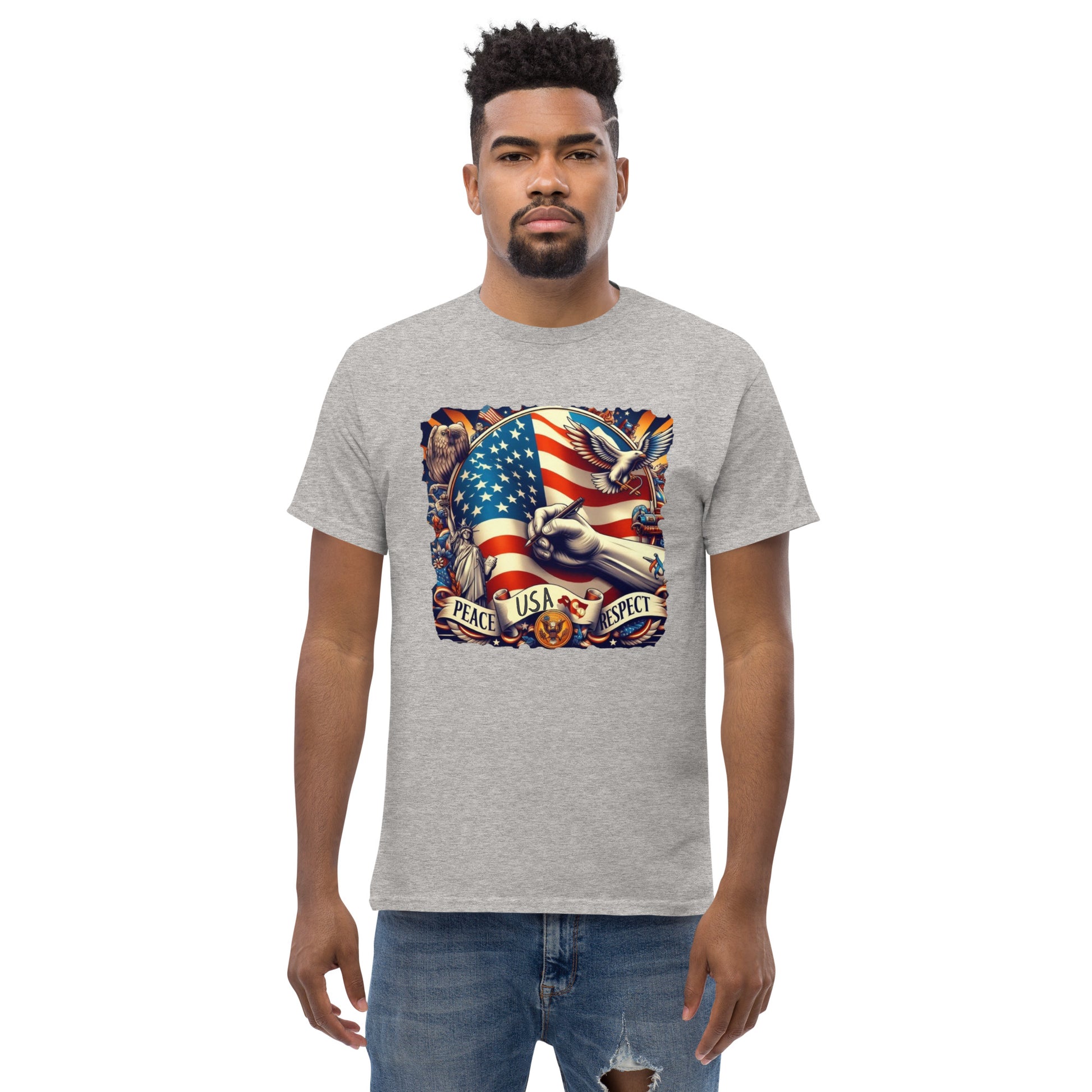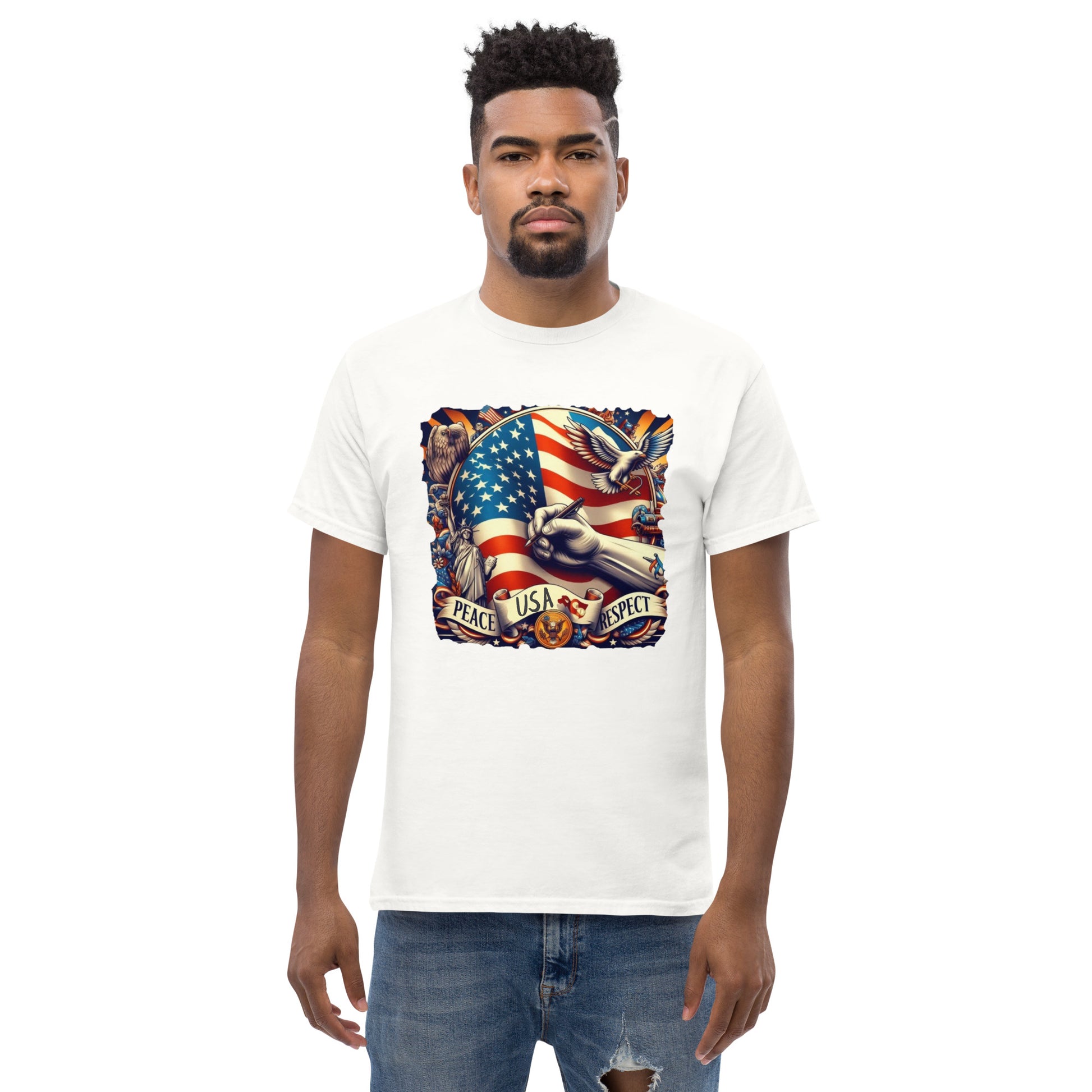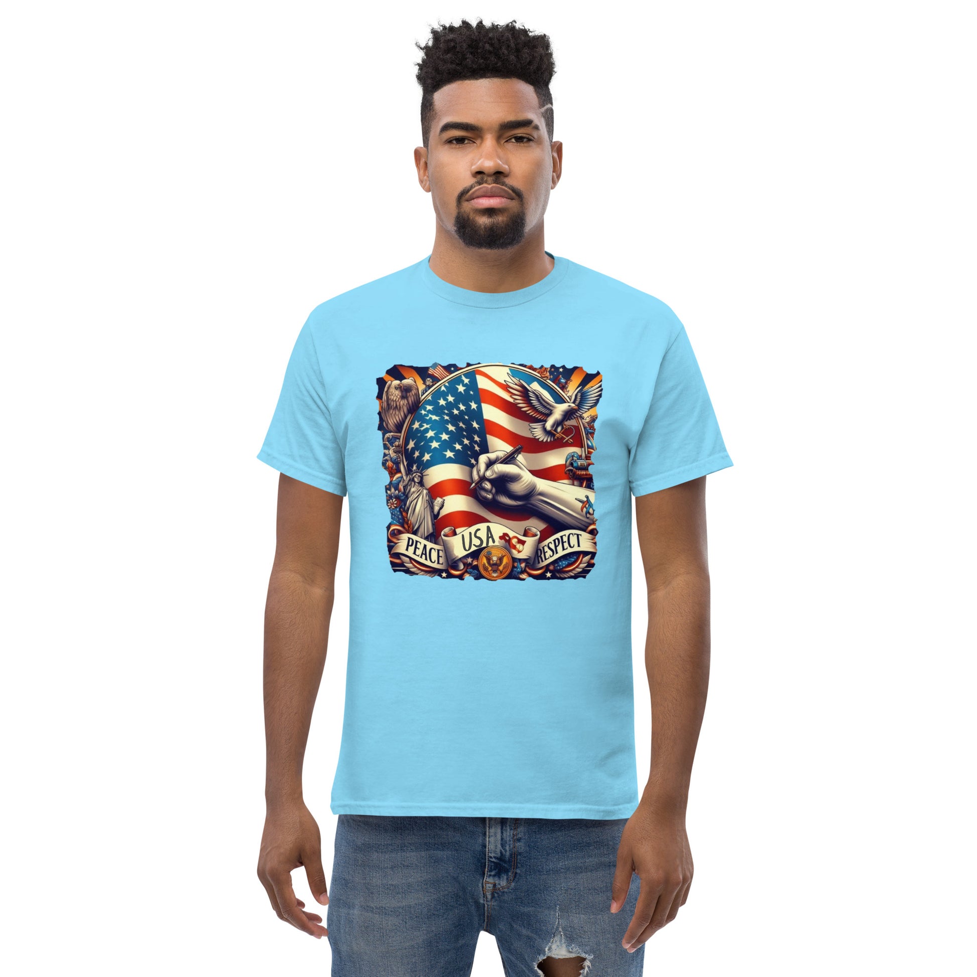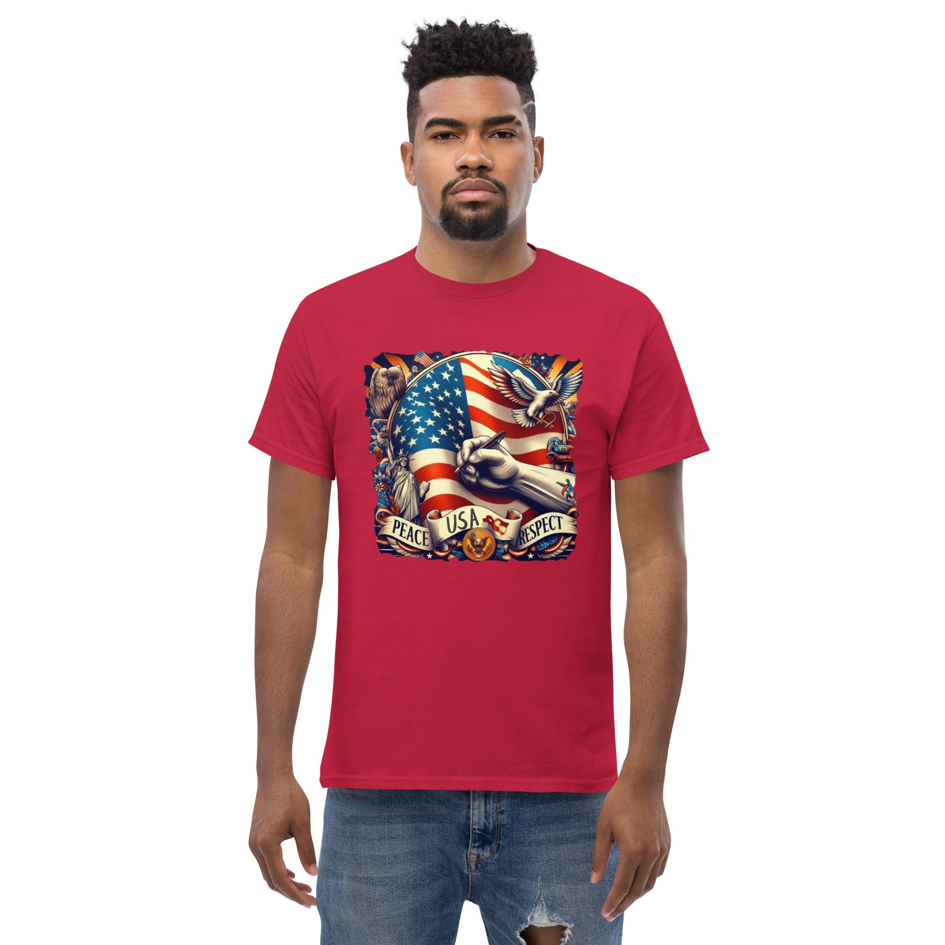USA, The 100% cotton unisex classic tee will help you land a more structured look. It sits nicely, maintains sharp lines around the edges, and goes perfectly with layered streetwear outfits. Plus, it's extra trendy now!