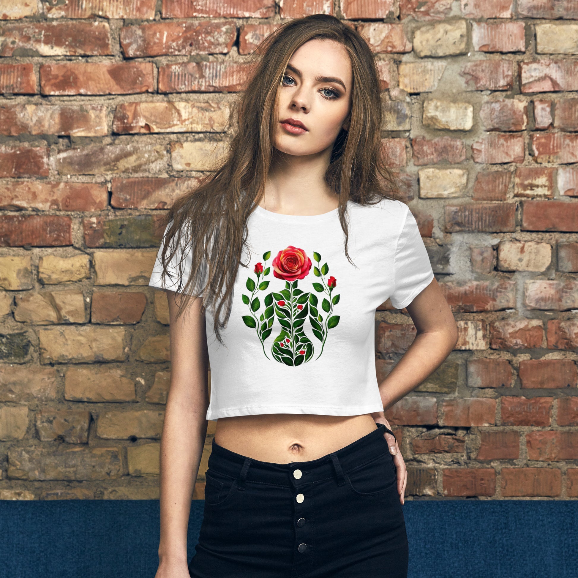 Flower , The season's trendiest garment - the crop top. This top is tight-fitting but still incredibly comfortable, and it hits just above the navel.